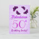 Este design roxo da borboleta do leopardo é uma maneira bonito e elegante de convidar povos a uma 50th celebração fabulosa da festa de aniversário. Todo o texto é totalmente customizável. Você pode experimentar com os tipos de papel diferentes clicando do "na aba das opções convite" no canto de righthand superior. Embora este design seja caracterizado em um papel básico, eu recomendo o papel metálico hued do gelo, que dará a seus convites um shimmer e um brilho festivos.