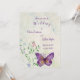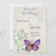 O convite para casamento de borboletas roxas personalizadas para o seu dia mais feliz de todos. Adicione sua mensagem de convite pessoal de casamento na parte de trás ou deixe-a vazio e manuscreva sua mensagem pessoalmente.