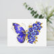 Joias, azul, safira, borboleta flor cintilante com asa decorada com flores azuis preciosas com folhas de ouro sobre fundo branco.