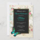 Um convite bonito para uma série de eventos, como chá de panela, festa de aposentadoria ou aniversário. Projetado com uma elegante borboleta verde. Um quadro preto com borda dourada por baixo. O fundo é um padrão de colagem vintage com rosas e um olhar antiquado.