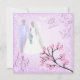 Borboletas violetas decor e cerejeira atrás, convite bonito para casamento