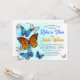 Convite de casamento romântico e moderno com borboletas Morpho e Monarca (laranja e azul) - Cores vibrantes que nunca saem de moda.