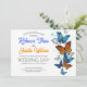 Convite de casamento romântico e moderno com Borboletas Morpho e Monarca (laranja e azul) - Cores vibrantes que nunca saem de moda.