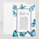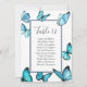 Borboletas azuis em aquarela Mapa de mesa para casamento. Escolha elegante para casamentos de verão. Parte de uma coleção de casamento. Cartão com escolha de refeição.