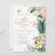 Flores tropicais, abacaxi e borboletas com folhas de palma. Este convite é facilmente personalizado para o seu evento simplesmente adicionando os seus detalhes.