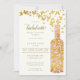 Um simples, moderno, elegante e modelo de convite à festa de solteira com tema de borboleta, com uma garrafa de vinho embebida em borboletas de ouro (é um efeito digital, não uma folha de papel real). Uma escolha encantadora para uma festa de solteira de provando de vinho em Napa Valley, Sonoma, Wine Country... ou qualquer adega.