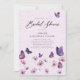 Um chá de panela elegante com flores silvestres (cosmos) roxas e cor-de-água, borboletas roxas e cor-de-rosa com borboletas douradas (são efeitos digitais, não são folhas reais ou reluzentes!) e caligrafia moderna, com uma flor silvestre rosa nas costas. Elegante e chic, é o convite perfeito para um almoço de noiva, brunch ou festa no jardim do quintal, ou para qualquer noiva que ame flores silvestres, borboletas e designs rústicas, de campo com um toque de amor romântico.