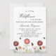 Um fundo branco. Decorado com flores silvestres pintadas em mudas, terras coloridas e borboletas. Personalize e adicione um nome e detalhes da parte.
