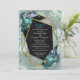 A natureza primavera à vida na nova coleção Borboleta do Paraíso. Espalhaço tropical em azul, turquesa e folhas azul-esverdeadas num padrão preto texturizado com borboletas coloridas. Designs de cartão de personalização com uma estrutura geométrica de ouro para tema do papel de carta de casamento ou como design de decoração