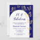 Honre uma mulher ou menina especial com este Convite de aniversário elegante e feminino. Este design elegante apresenta um quadro de arco branco em um pano de fundo azul marinho. O quadro é decorado com uma bonito arte de clipe de borboletas douradas. Cada texto é personalizável para suas necessidades.