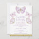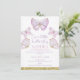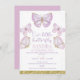Borboletas Douradas roxas Girls primeiro aniversario Convite para a realização de um convite para o aniversário de uma simples borboleta doce, com cinco borboletas de ouro e roxas, falsa cinza dourada e pontos coloridos de mauve. Este nosso primeiro convite de aniversário para a borboleta é ideal para uma festa de aniversário de borboletas roxa e dourada.