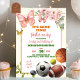 Borboletas e boletins desportivos Conjuntos de Aniversário, Convocação de Aniversário, Menino e Rapariga Irmão Convocação de Aniversário, Convite Conjunta de Aniversário Verde e Rosa, Bolas e Borboletas Conjuntos de Aniversário