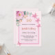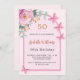 Um fundo cor-de-rosa com um arco. Decorados com um verde-floral, rosa, de cor verde, verde-aquoso de eucalipto e borboletas. Personalize e adicione seu nome e detalhes da festa. Traseira: cor de fundo rosa dourada.