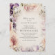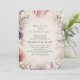 Púrpura e pincelada pincelada, cor-de-água rosa, floral com borboletas em um convite de janto de ensaio de casamento de cor creme. O texto diz, "Antes de dizermos 'Eu quero', queremos vê-lo."