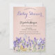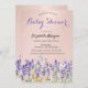 lavandante aquarela com borboletas em fundo rosa. Esses convites para chuveiros de bebês são facilmente personalizados para seu evento simplesmente adicionando seus detalhes.
