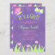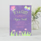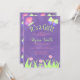 O convite para chá de fraldas de uma menina de borboleta rosa, verde e roxa.