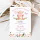 Borboletas Roxas Nosso Pequeno primeiro aniversario Piggy Convite Nosso Pequeno Porquinho Tema de primeiro aniversario Apresentando um porco giro, algumas flores silvestres, borboletas roxas e um balão rosa. Este convite de aniversário temático para porcos poderia ser usado em qualquer idade.