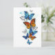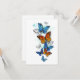 Borboleta azul-clara e voadora morfo e borboleta-monarca laranja num fundo branco. Morpho. Borboleta monarca. Design com borboletas.