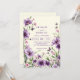 Fronteira de flores roxas e código QR RSVP Convite para casamento. Convide seus convidados com um toque de romance de eterno. Este convite encantador de casamento apresenta uma fronteira cativante de flores roxas ricas de anêmona num delicado estilo de safra. Folhas verdes e borboletas brancas flutuam graciosamente, todas colocadas sobre um fundo suave e cremoso, esbranquiçado. O design casado sofistica com um toque pessoal, combinando fontes elegantes clássicas e fluentes de caligrafia de script. Para uma conveniência moderna, o verso inclui um código de QR discreto para RSVP on-line sem problemas.