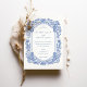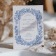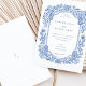 Este sofisticado convite para o casamento apresenta um intrincado design floral pintado à mão num azul de cobalto impressionante. Os motivos florais enquadram os detalhes do casamento com uma delicada fronteira inspirada na natureza, criando uma elegante e eterno estética. O fundo branco limpo melhora o contraste dos elementos florais azuis, enquanto o layout minimalista do texto adiciona um toque moderno ao trabalho de arte clássico. A parte de trás do cartão apresenta um monograma simples e minimalista, que acrescenta um elemento pessoal e refinado. Ideal para casamentos tradicionais, rústicos ou de horta, esse convite reúne a beleza da natureza e do artesanato artístico com sua design detalhada e elegante.