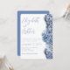 Flores de hydrangea azuis nos convites de casamento. As flores azuis-claras e lavandas criam uma bela borda no lado direito do papel branco. Nomes do casal e todo texto do convite de casamento se alinha à esquerda. O texto é cinza azul no script manuscrito e no texto impresso. O texto tem a noiva e o noivo convidando convidados. Exemplo de texto é, "peça a honra de sua presença em nossa comemoração do casamento." A data do evento é maior para se destacar e pode ser anotada ou numérica. Mostradas com cantos arredondados, há muitas seleções de papel disponíveis e uma opção de download.