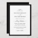 Este convite de casamento com borda preta e branca e verso preto é uma escolha atemporal para casais que valorizam a sofisticação moderna e o design limpo. Com um fundo branco nítido emoldurado por uma borda preta ousada e tipografia elegante, este estilo minimalista causa uma primeira impressão marcante. O verso preto elegante adiciona um acabamento refinado, garantindo que seu convite pareça completo e polido de todos os ângulos. Personalize facilmente atualizando a redação, ajustando os estilos e tamanhos de fonte ou até mesmo alterando as opções de fundo para atender à sua visão, tornando-o exclusivamente seu. Perfeito para definir o tom de um casamento sofisticado, este convite foi projetado para chamar a atenção e refletir sua história de amor com estilo. Comece sua celebração enviando um convite que fala de elegância e intenção.