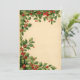Borda superior de azevinho fluindo com bagas caindo sobre papel envelhecido - ótimo para café da manhã de Natal, encontros sociais da igreja ou mercados de inverno.