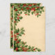 Borda superior de azevinho fluindo com bagas caindo sobre papel envelhecido - ótimo para café da manhã de Natal, encontros sociais da igreja ou mercados de inverno.