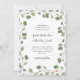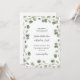 Este convite de casamento da moda mostra uma borda de folhas e folhagem verde de cor aquática romântica. Texto preto moderno e script manuscrito adicionam o toque perfeito e elegante. Uma simples, mas espantosa, procura o teu casamento minimalista, rústico ou botânico.