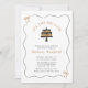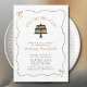 Borda ondulada branca com Arco Dourado e Convite de festas ilustrado preto... O nosso convite de festas aniversário de 40 anos feminino brilhante apresenta linhas onduladas desenhadas à mão e ilustrações bonitas de arcos criando uma fronteira divertida de rabiscos de tendências para o texto do convite dentro. Um bolo de aniversário feito em duas camadas em preto e ouro aparece logo abaixo do título "É o 4-oh grande". Uma fonte serif elegante exibe o texto do convite e todo o texto pode ser facilmente revisado com seus próprios detalhes no modelo de personalização.
