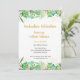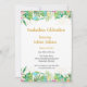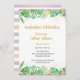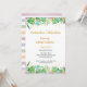Um convite na moda para a graduação com tema tropical, apresenta uma borda superior e inferior de flores bonito e verde com um toque de confete dourado (processado digitalmente). O dorso tem um padrão amplo listrado em cores de coordenação.