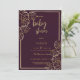 O moderno elegante Bordeaux, floral vermelho profundo e rico, inclui a tipografia escrita a ouro impressa. Este convite de Chá de fraldas clássico da moda é o impressão perfeito para qualquer evento especial da mãe. Personalize este design com seus detalhes. Personalize este design com seus detalhes e monograma inicial.