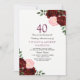 Convites Bordô Rosa Floral 40º Aniversário de Casamento