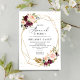 Chá de panela de Brunch e Bubble, com uma dolorosa burgundy de cor d'água pintada à mão e flores de pincel acentuadas com verde, quadro de ouro geométrico e pontos falsos de brilho dourado.