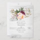 Concurso para casamento de crosta rústica de cor d'água de borgonha e pêssego, projetado para ser rápida e facilmente personalizado de acordo com suas especificidades de evento. Ideal para qualquer tema ou casamento de jardim. O código QR no verso direciona para o seu local de casamento onde o pessoas pode aprender mais e rsvp.