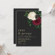 Simples, moderno bolho, gótico, elegante e romântico romântico romântico, convite para casamento floral vermelho e preto com monograma no canto superior direito e flores adoráveis de rosa de aquarela.