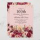 Convites Borgonha rosa Dourada Floral 100º Aniversário