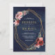 Incêndios para seus hóspedes com este elegante tudo em um convite de casamento com lindas flores e quadros geométricos com a tipografia moderna. Basta adicionar os detalhes do seu evento neste modelo fácil de usar para torná-lo um convite de tipo único.
