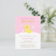 Um chuveiro de bebê amarelo giro convidando convidados para comemorar com mamães para ser. Muitas bolhas de chá e um azulejo de banheiro rosa doce fundo de parede. Doce e adorável! Personalize facilmente com os detalhes do seu partido.
