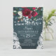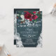 Festa de aniversário de convite para na moda de inverno clássico no dia 16 de no modelo de um quadro azul-marinho escuro com uma bela burgundy escura e peônias brancas buquês com folhagem verde caçadora, cordas de luzes cintilantes brancas, cantos de rendas e um roteiro de tipografia quic. +++++++++++++++ Fácil de personalizar com seus detalhes! +++++++++++++++++ O convite é adequado para os elegantes países rústicos de inverno / fazenda / casa de campo / casa de Natal doce 16 festas.