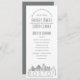 Um programa de casamento com temas de skyline deco para um casamento acontecendo na bela cidade de Boston, Massachusetts. Este cartão do programa de casamento apresenta uma ilustração estilizada do horizonte único da cidade com seu nome embaixo. Isto está descansando debaixo da informação do dia do casamento em um estilo aberto. No verso está uma cor de cinza de níquel macio com mais detalhes de casamento em texto branco para felicitar a frente. Uma na moda de maneira a dar boas-vindas a pessoas que saem da cidade, ao mesmo tempo que lhes dá informações úteis sobre a sua série de eventos de cerimônia de casamento.