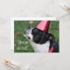 Cute Boston terrier vestindo chapéu vermelho - texto pode ser adicionado à frente e atrás do cartão como quiser.