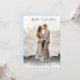 Um belo cartão de data com sua foto vertical na frente - e seus nomes, data, localização. A parte traseira apresenta uma pequena foto quadrada e um texto mais personalizado definido em um fundo azul claro. Simples e clássico com um sentimento moderno - coordena-se perfeitamente com tantos dos atuais estilos de casamento.