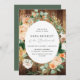 Lindos convites para brunhas de damas de honra, com um elegante tom pastel neutro, elegante, quadro verde botânico floral em tons suaves de pêssego, laranja, blush suave, amarelos, e muitos tons de verde de verde sábio a verdes brilhantes e mais profundos. Seus detalhes personalizados são exibidos em um elevado layout tipográfico que coloca o convidado de honra em frente e no centro.