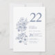 Flor Floral Mínimo Botânico Floral Azul 22º Aniversário | Convites de aniversário para adultos | Bolsas de cor azul-poeirenta mínima botulínica 22ª Convites | 22.a Celebração de Aniversário