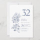 Flor Selvagem Botânica Mínimo Floral Azul e Branco 32 Convite de Aniversário | Convites de aniversário para adultos | Botânico Mínimo Floral Azul e Branco 32.o Convites | trinta e dois anos de celebração de aniversário