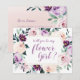 Uma moldura geométrica rodeada por aquarela botânica floral e folhagens em rosa, pêssego e roxo, elegante e romântico, ótimo cartão de proposta de dama de honra "Você será minha dama de flores?" para casamento moderno, casamento romântico e casamento no jardim botânico.