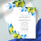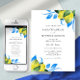 Uma simples e botânica escolha para anunciar seu casamento. Este convite de casamento apresenta limões de aquarelas e embelezamentos azuis com seus detalhes em cinzas de carvão sobre um fundo branco nítido. Use os campos de modelo para personalizar com seus nomes e data de casamento. Solicite placas impressas ou faça o download de um posto sem papel. Uma escolha elegante para casamentos rústicos, toscos, italianos, gregos e mediterrânicos.
