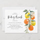 Convide a família e amigos para o seu evento com este convite de brunch de casamento botânico. Ele apresenta ilustrações aquarelas de laranjas, limões, laranjas floridas e verde com um padrão de citros correspondente. Personalize adicionando o nome, data, hora, local, endereço e outros detalhes do evento. Este convite cítrico é perfeito para festas de casamento de jardim e de verão. Itens correspondentes estão disponíveis.