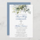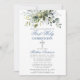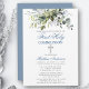 O Primeiro Convite à Comunidade Elegante Moderno inclui folhas de cor aquosa de eucalipto e outras lindas folhagens botânicas verdes. Silver Cross. Pó Azul.